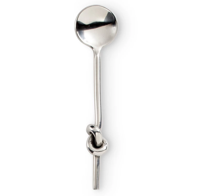 This Knot-Handled Spoon is as elegant as it is unique. Handcrafted out of stainless steel, this stylish spoon is accented with a distinctive knot in the middle – a chic complement to any entertaining occasion. Other knot-handled dinnerware also available.