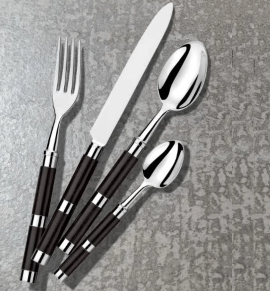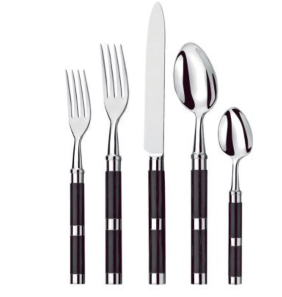 The Carla Collection by Alain Saint Joanis is coated ebony tree bark with stainless steel hardware. This family-owned company has been creating fine flatware in the purest tradition of French cutlery since 1876. These top-of-the-line collections are made with the finest quality materials.