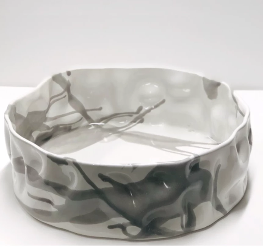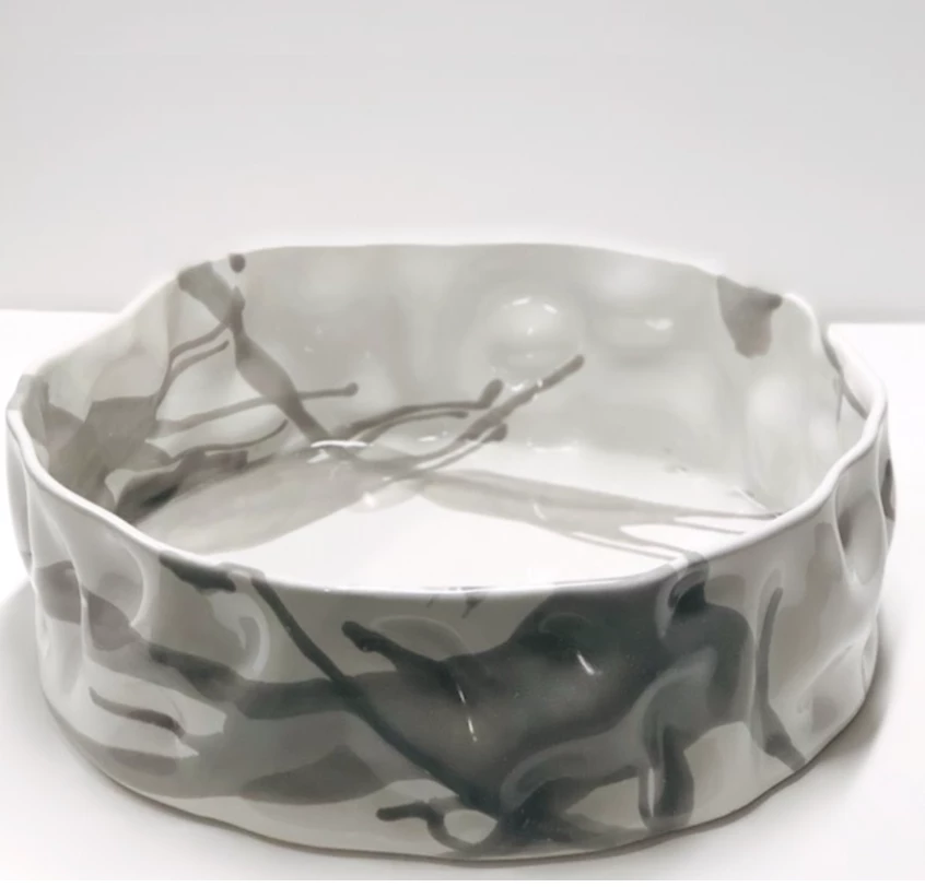 The ripple bowl is hand crafted in a studio on an olive orchard in northern California. Made from high-fire stoneware clay, the bowl is as functional as is is beautiful with an abstract design in Grey Gloss. Microwave and dishwasher safe, lead and cadmium free.Â