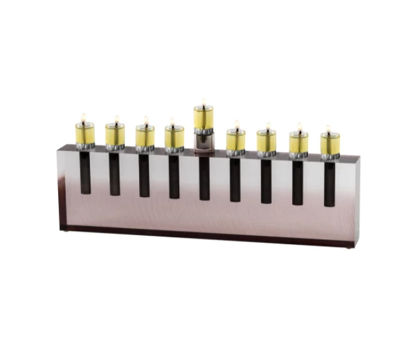 Let the light of the holiday shine bright with this attractive acrylic menorah.