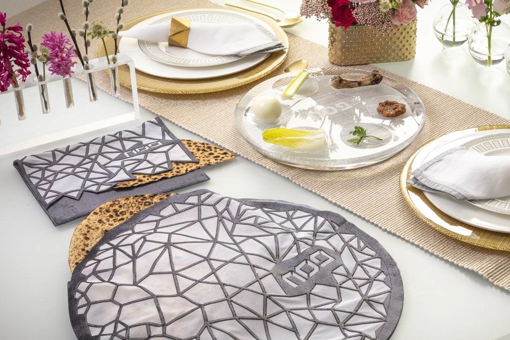 This modern geometric cover can ship immediately and help you make your Passover table special for your family this Passover.Â