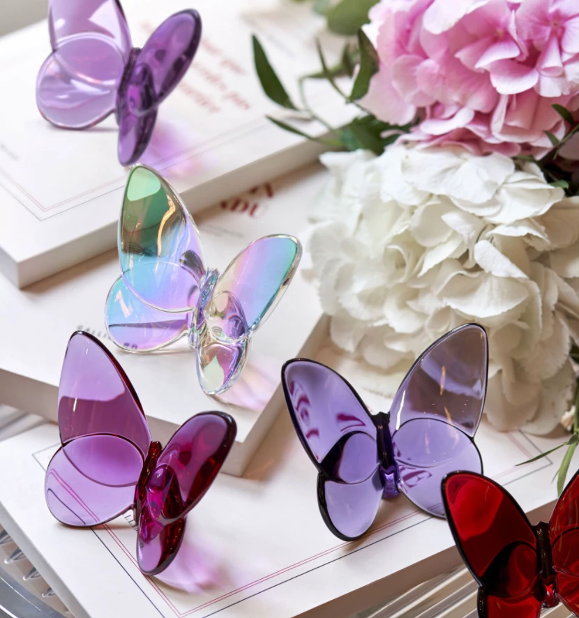 The poetic contours highlight Baccarat’s signature craftsmanship. Placed anywhere in the home, the Baccarat Lucky Butterfly elicits a sense of momentum and graceful élan. Designed for Baccarat by Evelyne Julienne, this fascinating creature comes in a wide variety of available colors including: amber, blue, iridescent, black, gold, peony, red, blue, turquoise, purple, and white.