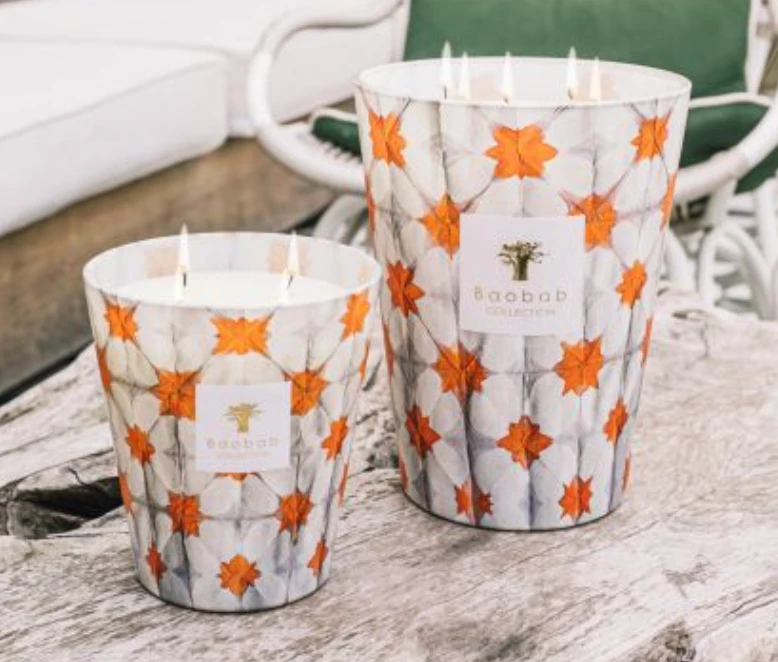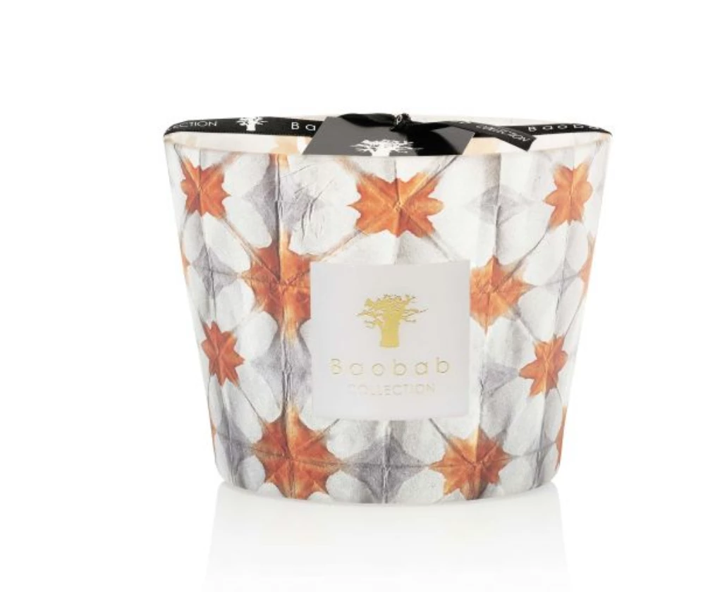 Calypso is a citrus scented decorative candle. The glass is decorated with subtle grey and orange motifs, giving an artisanal take on scented candles. Inside the glass, you can see the light of the flame, which gives a warm reflection of the decoration. The thyme, mandarin and blood orange scented candle evokes the feasts held by the muse Calypso for Ulysses, where she promised him eternal life.