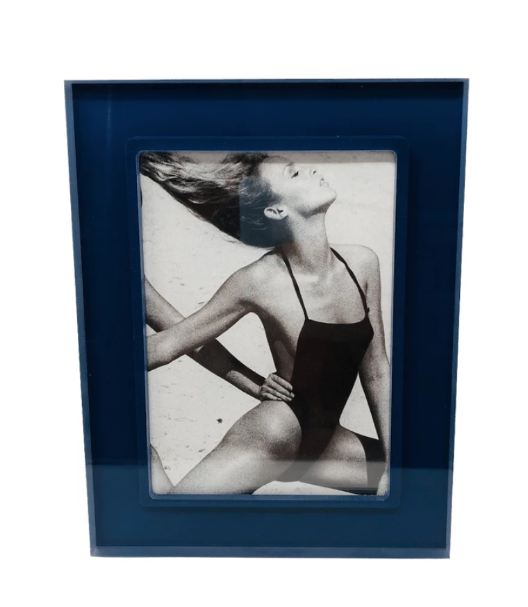 Our most popular selling frame has a very clean modern edge with back painted acrylic edge, allowing the focus to be on your beautiful photo. Museum quality backing and easel for table top display. Â