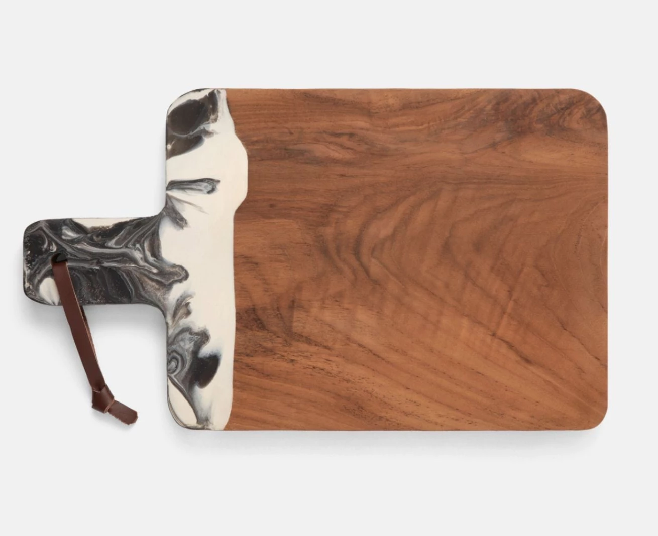 Teak and resin come together on this handcrafted board. Each board has a unique two-tone, hand-dipped color combo and no two boards are exactly alike.