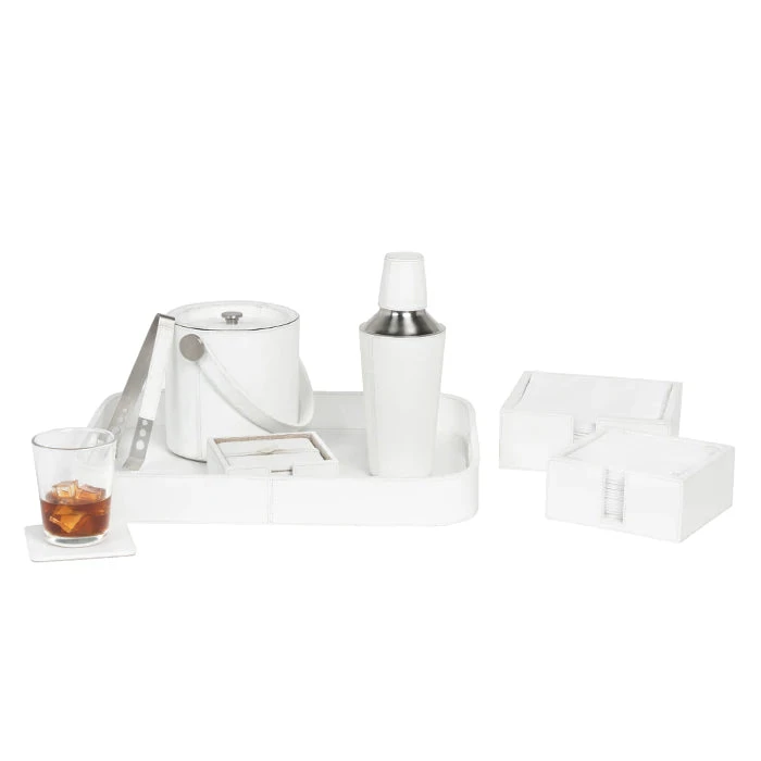 A cocktail hour must have. The Bright White Marine Leather holder is made of water-resistant yacht leather. Great for entertaining poolside all summer long.