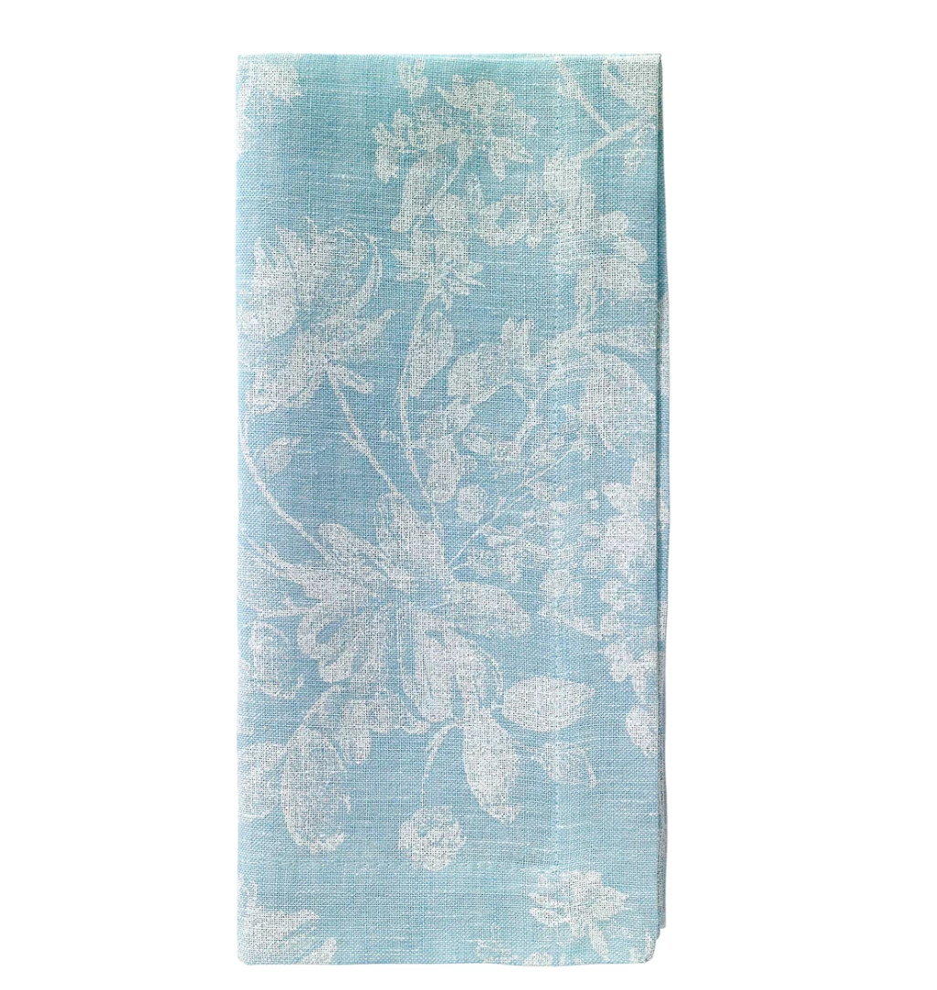 Floral prints are everywhere and this is a beautiful print on colored yarn-dyed linen. Make your table bloom with this set. Â