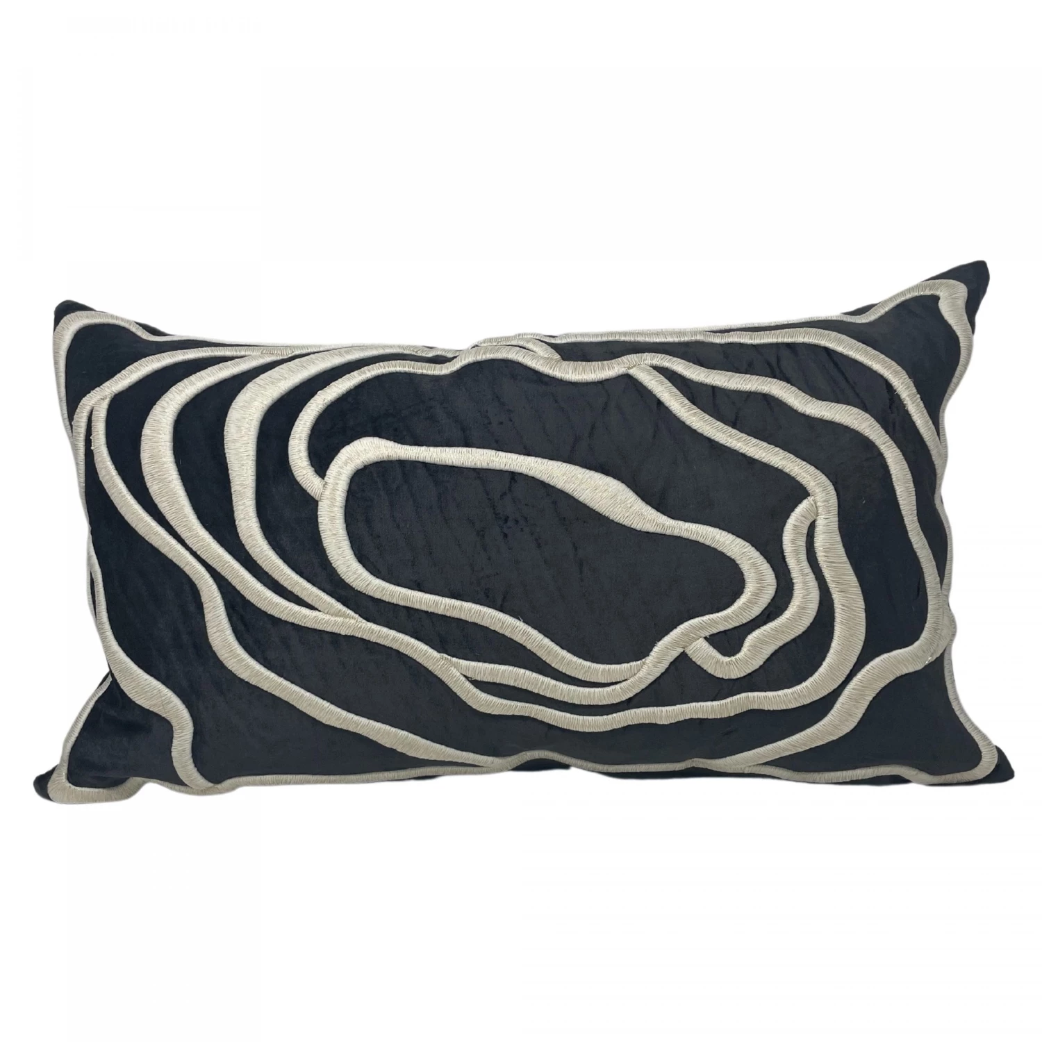The stunning craftsmanship makes this pillow a special piece With metallic threads in Cream and Gold swirled on a charcoal background in an abstract design.Â