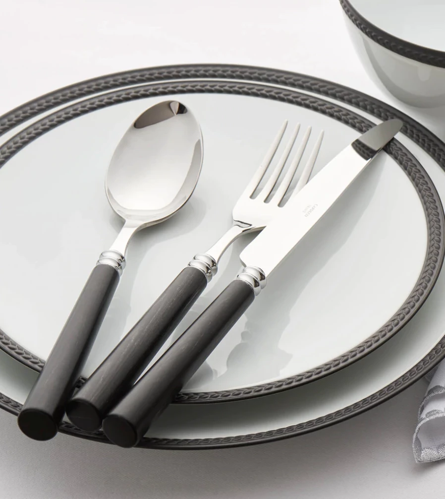 Marat Black Wood flatware by Capdeco, has a chic contemporary design with straight lines and a crisp form. The classically modern design of Marat will pair well with an array of dinnerware and glassware . This collection is versatile and timeless, allowing you to reinvent and reinvigorate your personal style at whim.