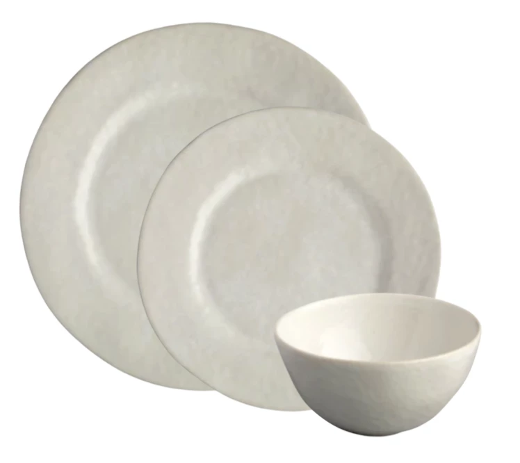 A neutral white feels timeless in this easy to care for collection. The softly sponged glaze gives the dinnerware a casual and elegant finish that is perfect for everyday use.