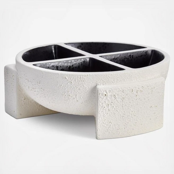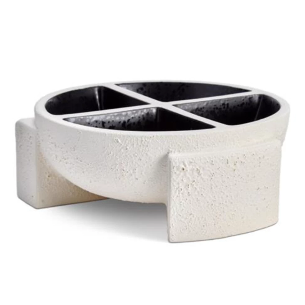 With a nod to both cubist art and Mayan carving, the Cubisme pieces from L’Objet take geometric simplicity to a new level. This tasteful serving bowl is created from lightly textured earthenware. It is food safe for entertaining and makes a striking decor piece.