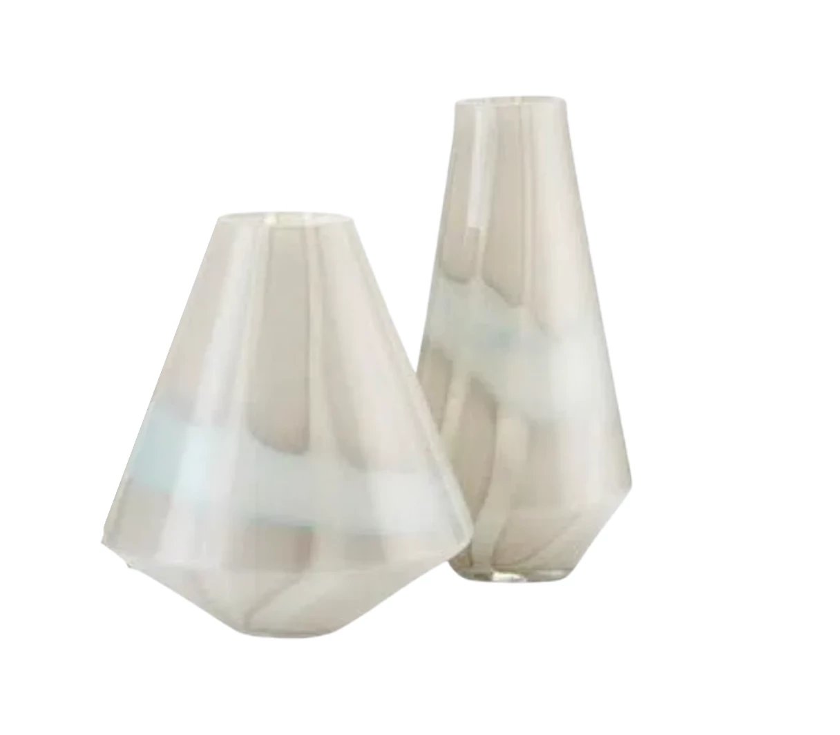 The Haze Vase made of luminous mouth-blown Venetian glass. This vase was created by a very sophisticated process that involves two artisans working together—one blowing the grey textured glass while a second pours white and light-blue texture into the molten glass. Because these are artisanal pieces, each one in a symphony of pale grays will be unique.