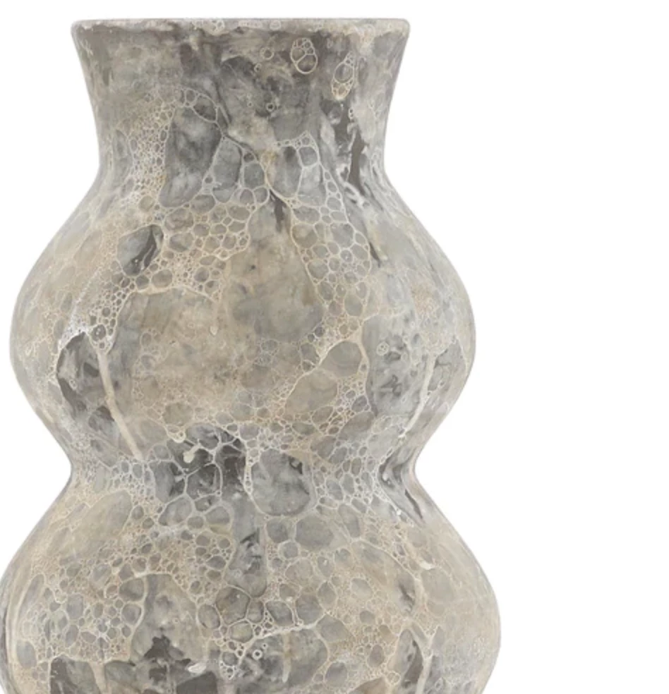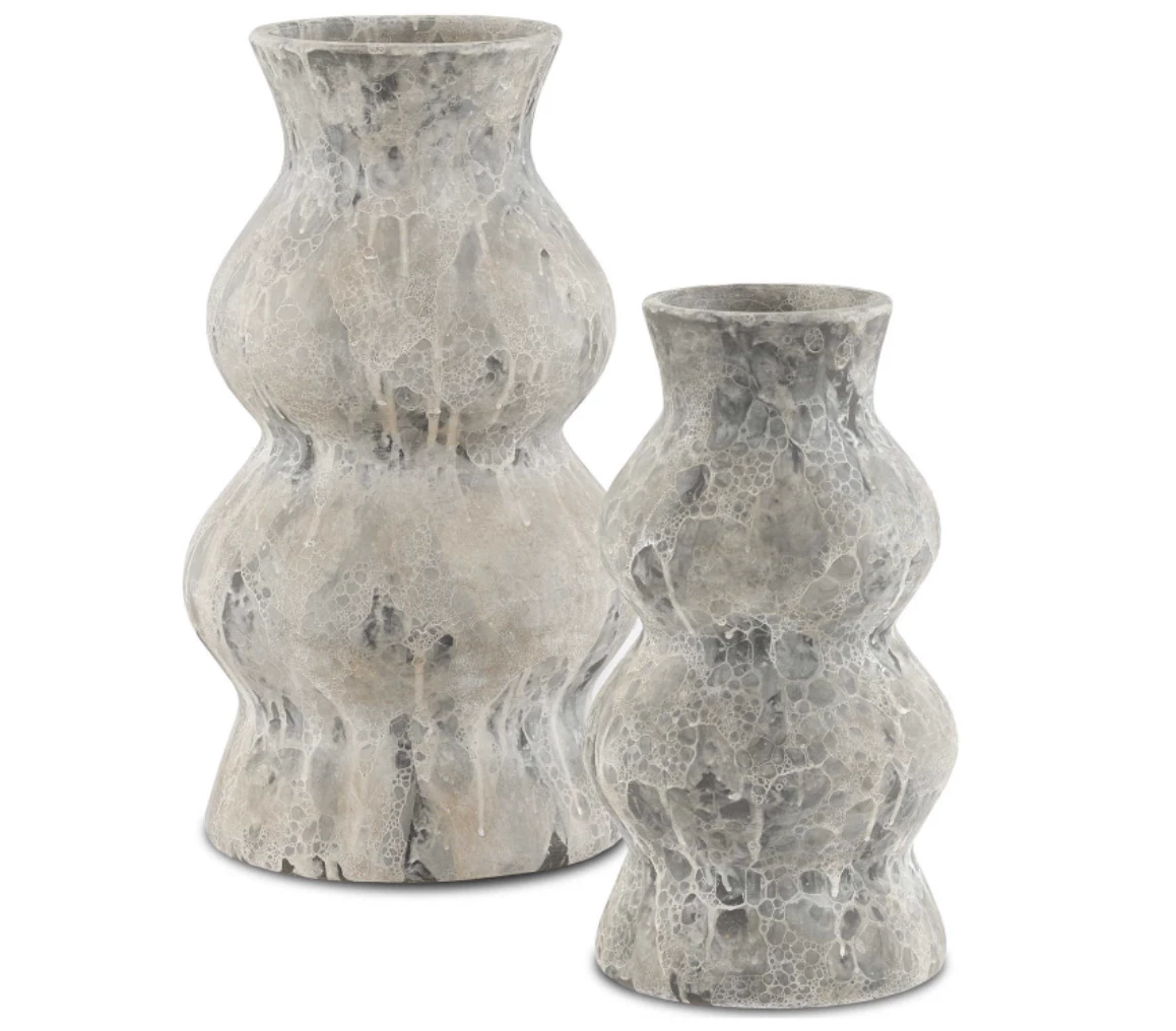 The Pheobe vases are made of terracotta. The runnels of ivory, white, and gray make this vase a textural wonder for a space begging for patina. Pair them together or us them individually.
