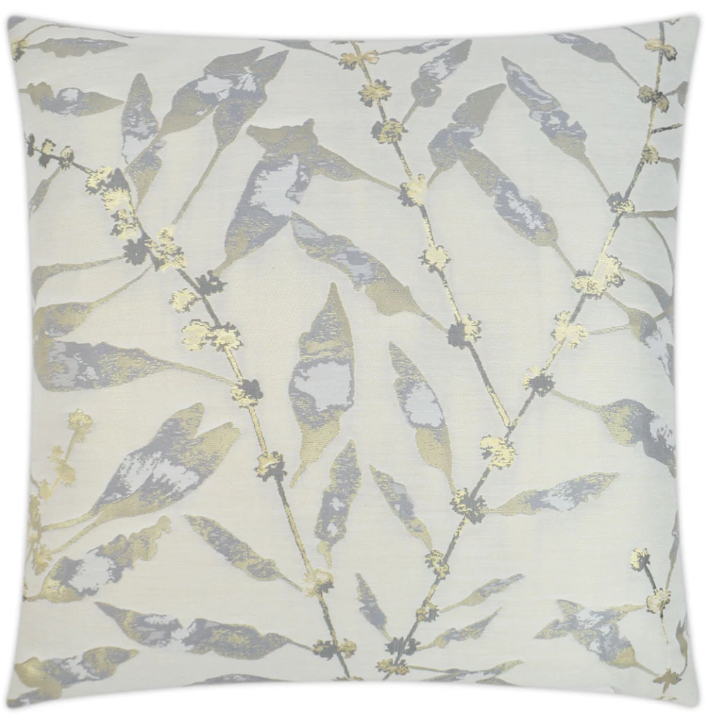A sophisticated design with shades of silver and gold accents. The perfect pillow for a living room or bedroom.Â