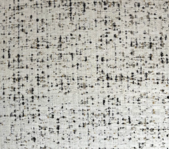 A tailored woven pillow with a speckle of neutral colors through the design.