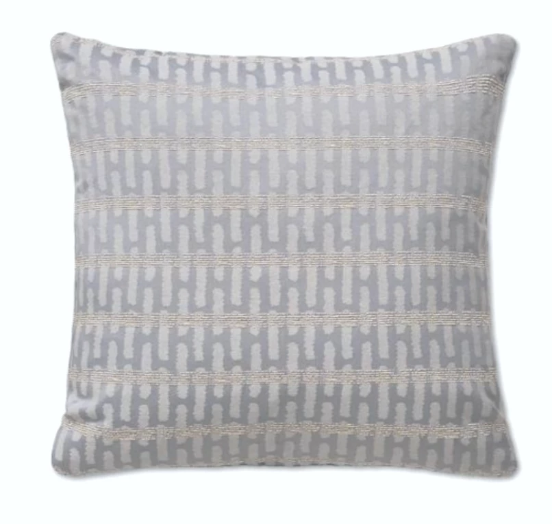 A subtle design in soft blue/grey and ivory that works beautifully in a living room or bedroom. The Gerard has a pretty geometric pattern with an ivory thread looped through the design.