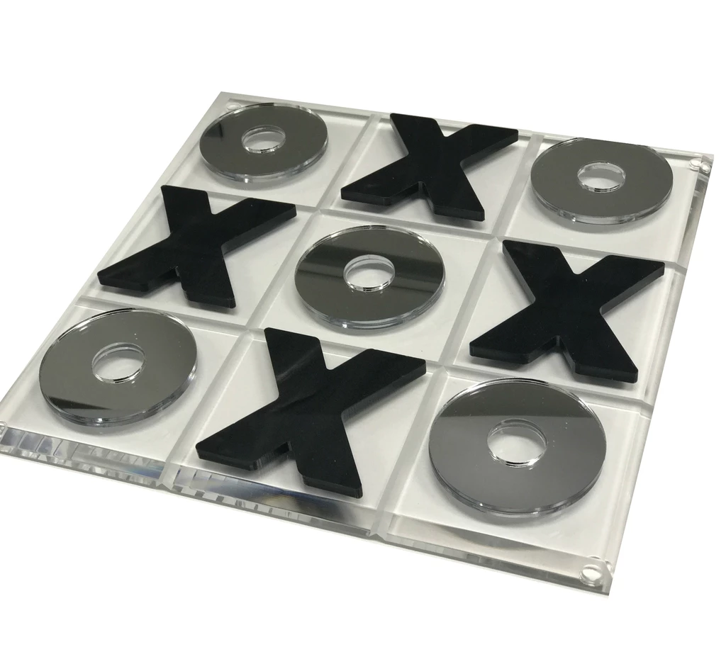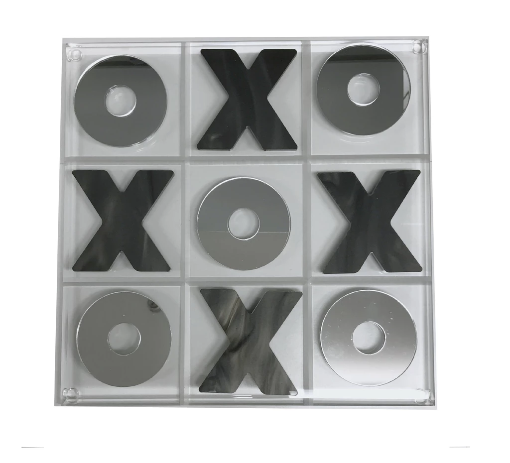 A Current Home favorite. This acrylic tic tac toe set from Eye Candy by Current Home includes a clear acrylic board and a mix of marble and mirror acrylic pieces.