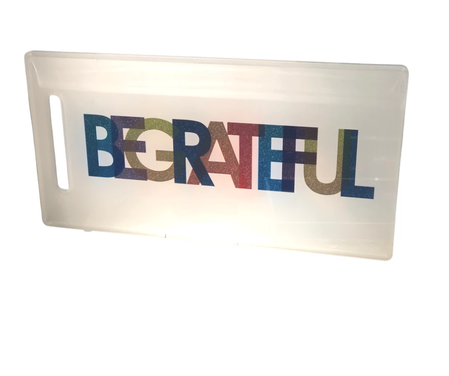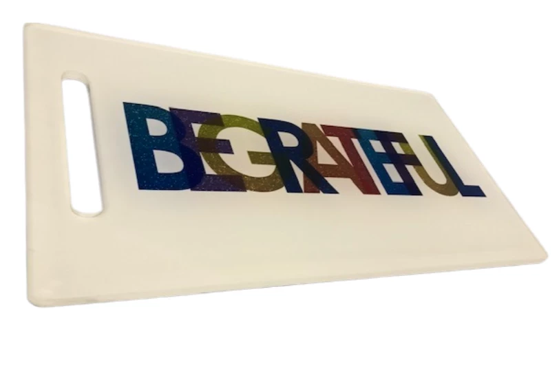 Be Grateful with this fun, graphic board. The modern design is composed of many colors in a modern font. Perfect size for starters and colorful enough to use year round, both indoors and outdoors.