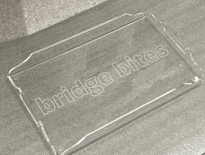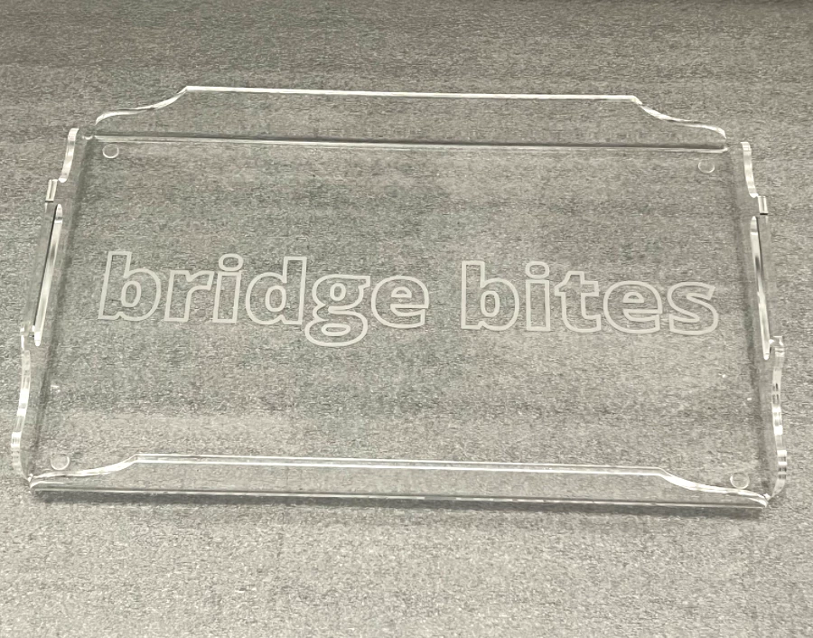 - Acrylic serving tray with etched words