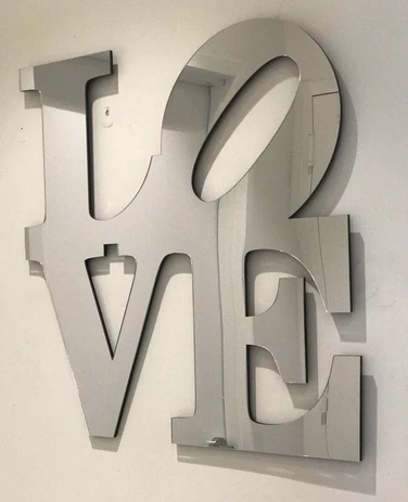 This cut out LOVE mirror by Eye Candy by Current Home is made of acrylic silver mirror. Hanging pieces are attached to the back for easy installation.