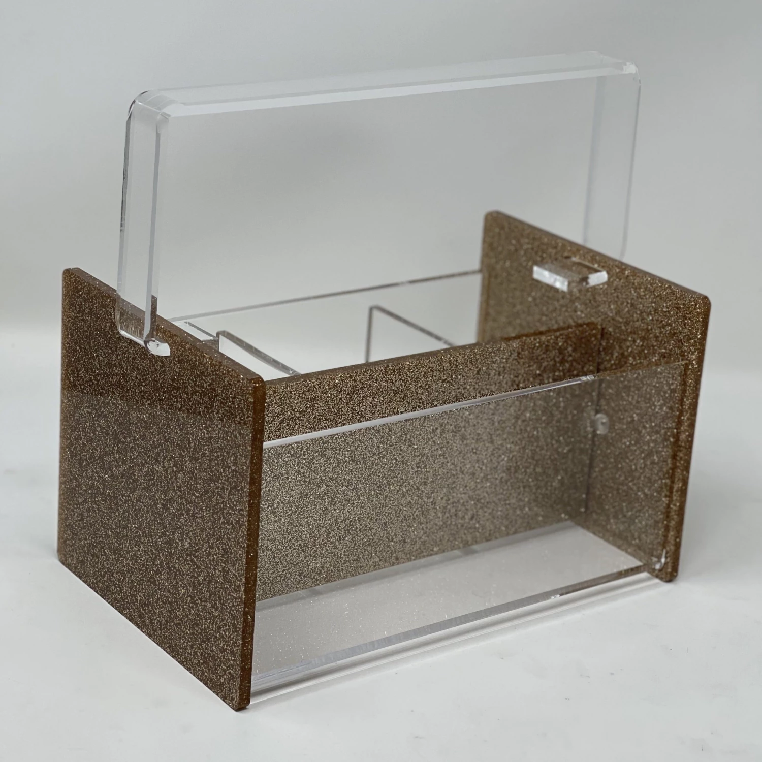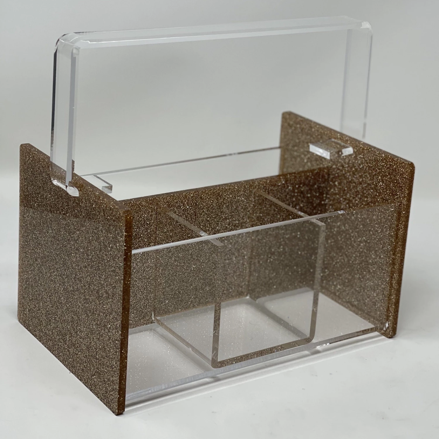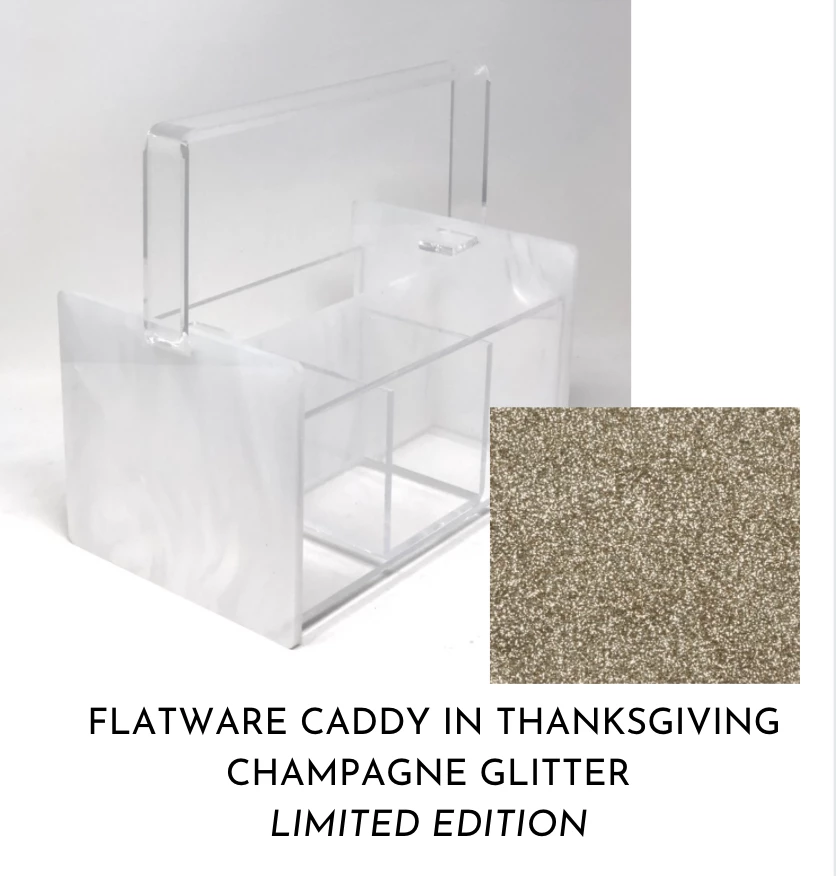 A CURRENT HOME FAVORITE GETS A TWIST FOR THE HOLIDAY SEASON.  SHIMMERING CHAMPAGNE ACRYLIC HAS BEEN USED TO CREATE THIS FABULOUS SERVING PIECE TO MAKE YOUR TABLE DECOR LOOK FESTIVE FOR THANKSGIVING & CHRISTMAS .