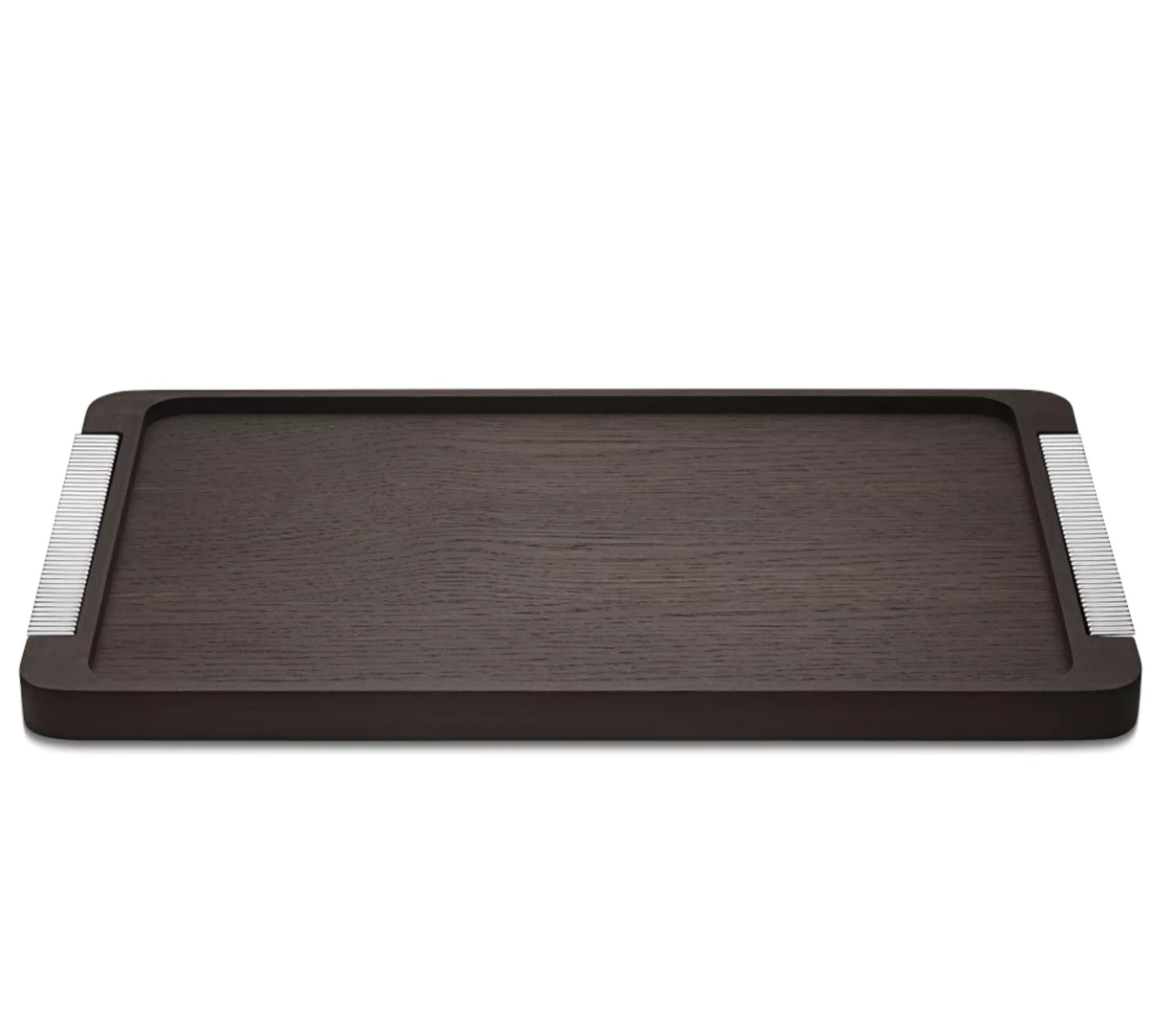 The ideal way to present food or drinks, the Bernadotte Tray from Georg Jensen is beautifully crafted from smoked oak, the tray has stainless steel handles that feature Art Deco-inspired grooves.