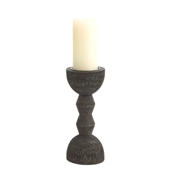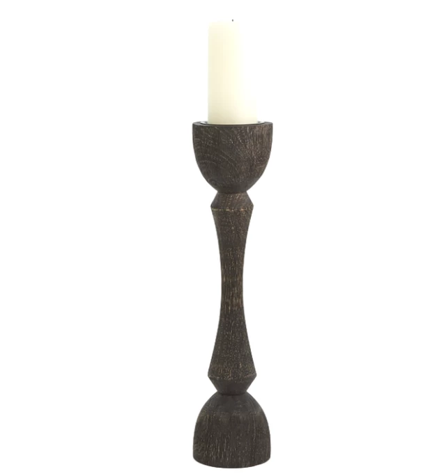 Inspired from folk pieces that are part of the collection in the Museum of International Folk Art. These candleholders offer artisanal silhouettes carved from rich wood.