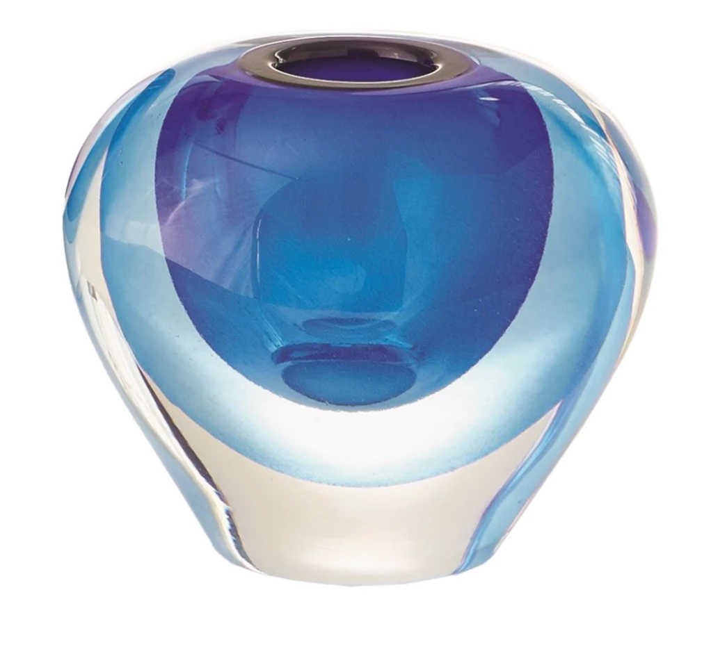 THE ORGANIC LAYER VASE IS MADE OF THICK GLASS IN BEAUTIFUL SHADES OF WATERY BLUE & DEEP SAPPHIRE ART GLASS.