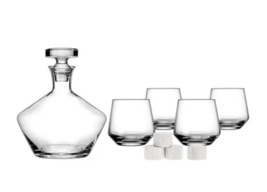 UPGRADE YOUR AT-HOME BAR WITH THE MARMONT WHISKEY SET THAT INCLUDES A DECANTER, 4 DOUBLE OLD FASHIONED GLASSES, AND 4 WHISKEY STONES. A FANTASTIC GIFT FOR THE WHISKEY LOVER IN YOUR LIFE!