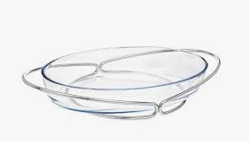 A must have in the kitchen and for serving a group. These oven safe, glass cooking pieces fit perfectly into the modern silver holder making them an attractive way to take hot food straight from the oven to the table. This two-piece baker includes the the oven safe glass for preparing meals.Â