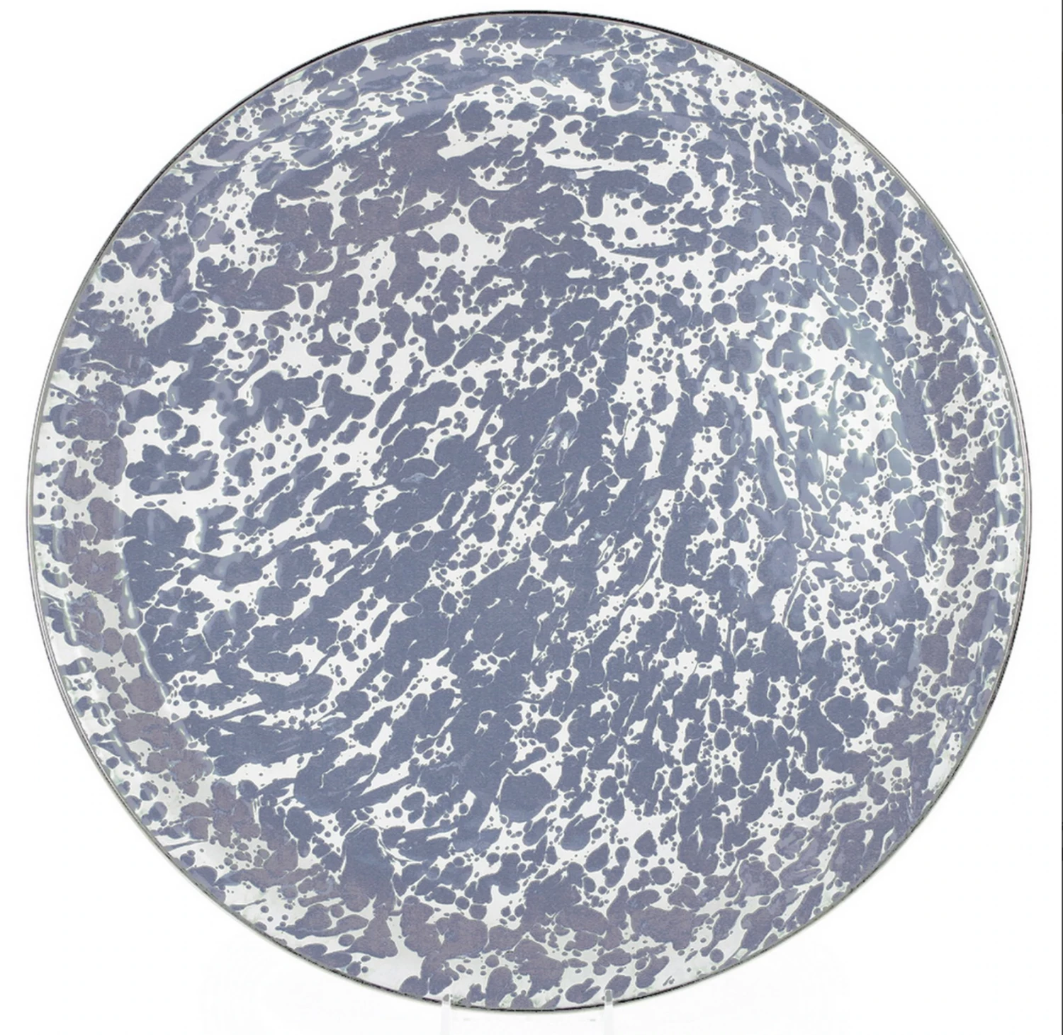 This collection will quickly become your favorite. The enamelware is made of carbon steel coated with a porcelain enamel and trimmed in stainless steel. The perfect tray for serving at BBQ or add a small bowl and turn the tray into a fabulous platter for starters.