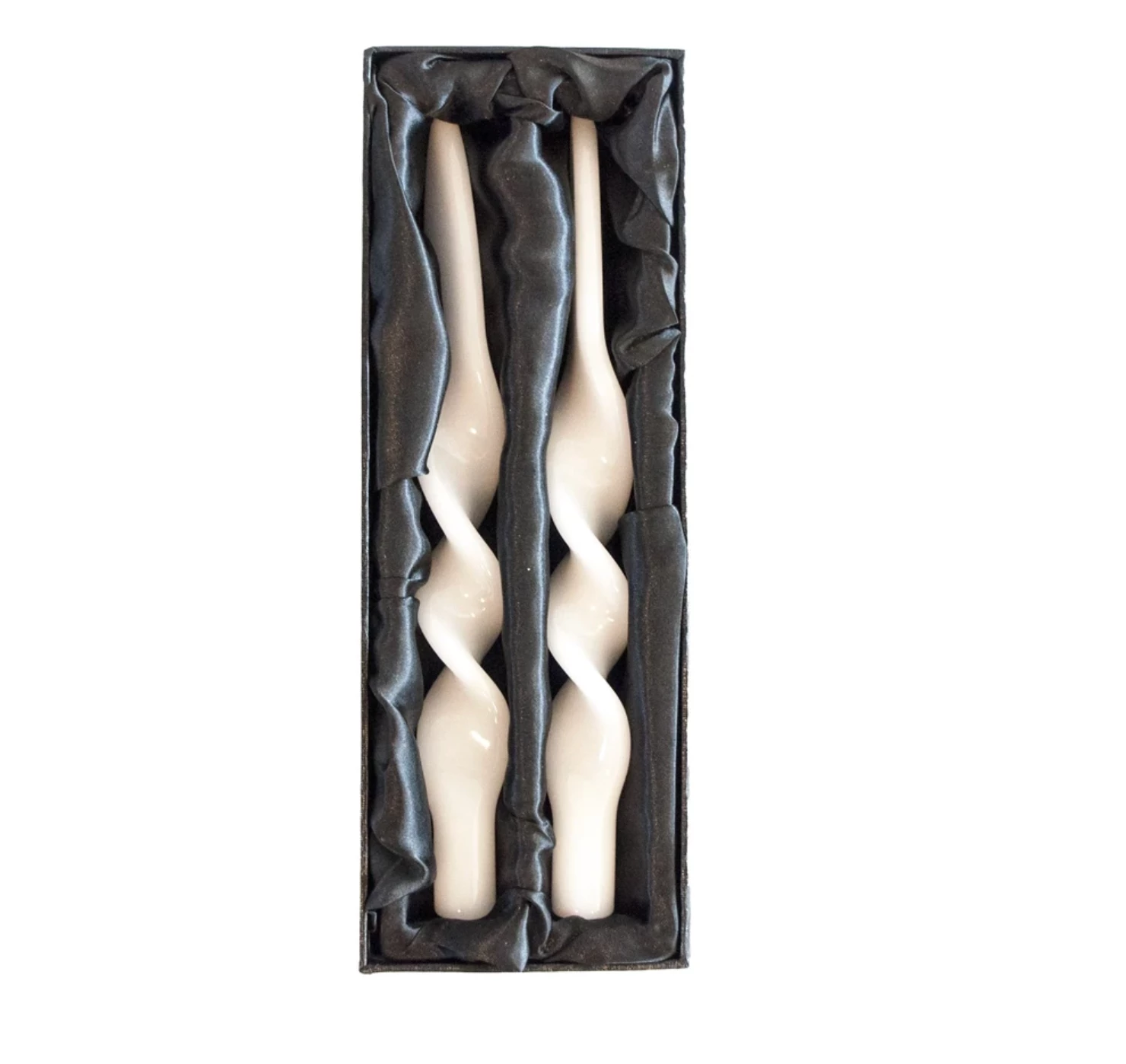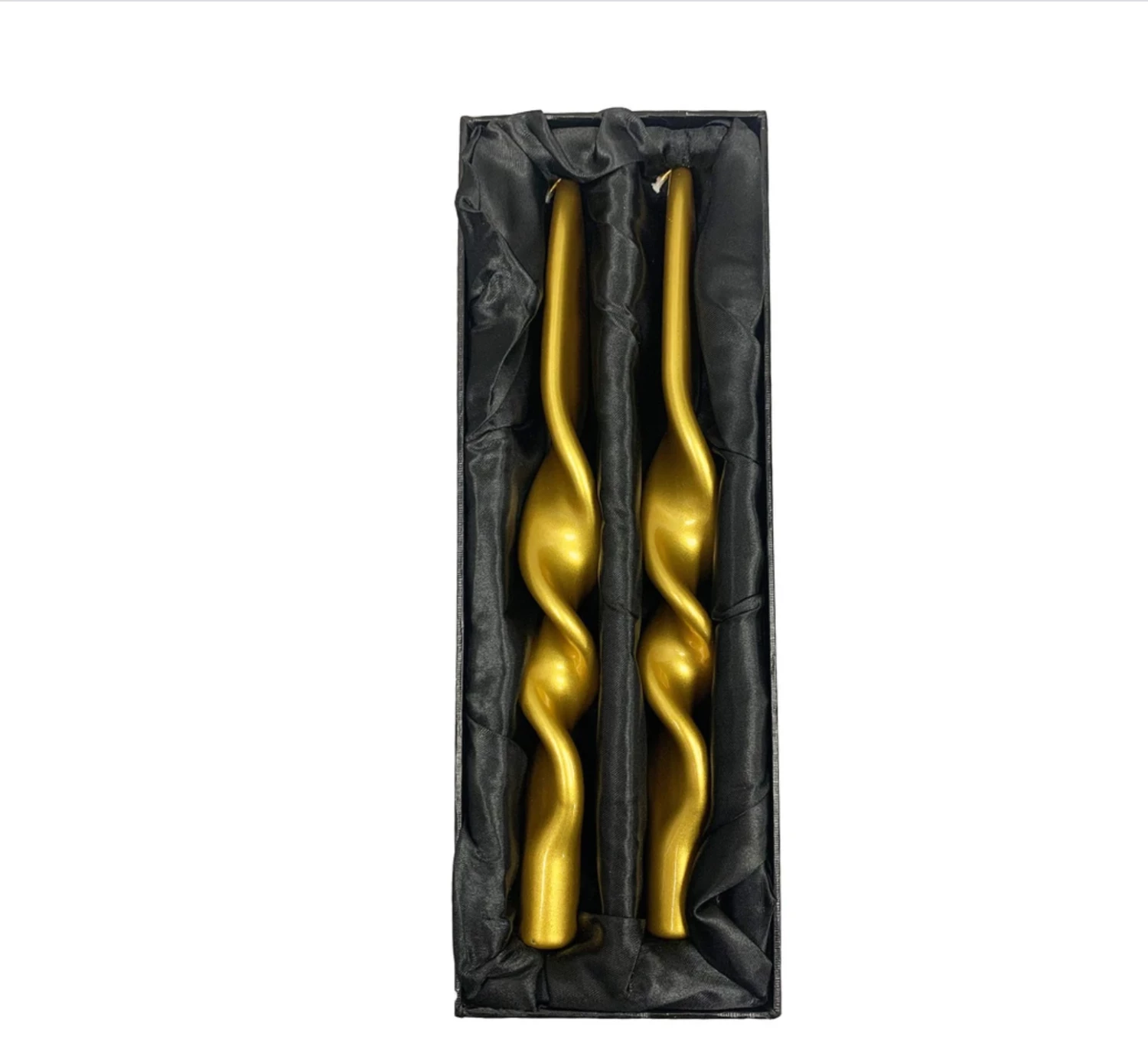 These candles offer a new twist! Handmade by dipping the warm candle in warm water to make it malleable to the expert hand of the craftsman. It has a classic finish, with a shiny effect. They make a beautiful gift.