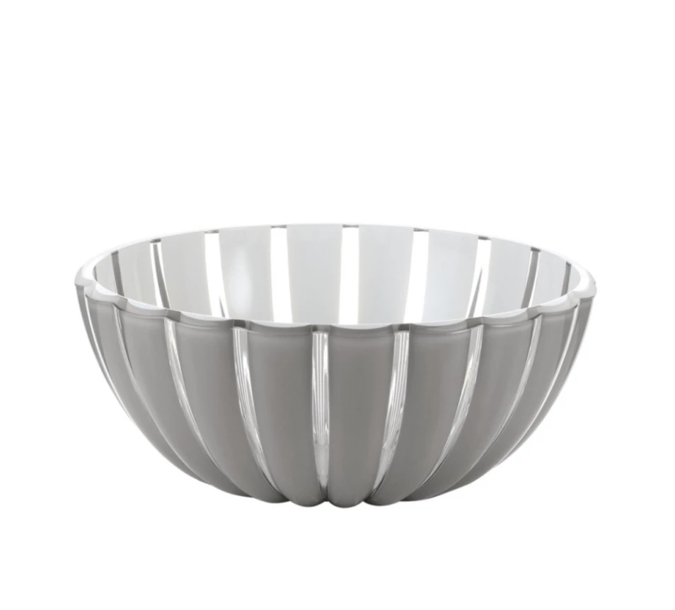 A CH favorite! These acrylic bowls are fun and great for indoor and outdoor entertaining.  They have a glossy white material on the inside, and a mix of grey and transparent slices through the bowl creating a unique effect. Ideal for salads, chips, side dishes and more.