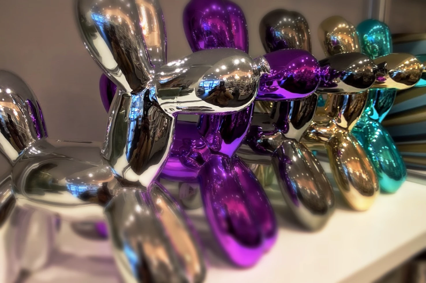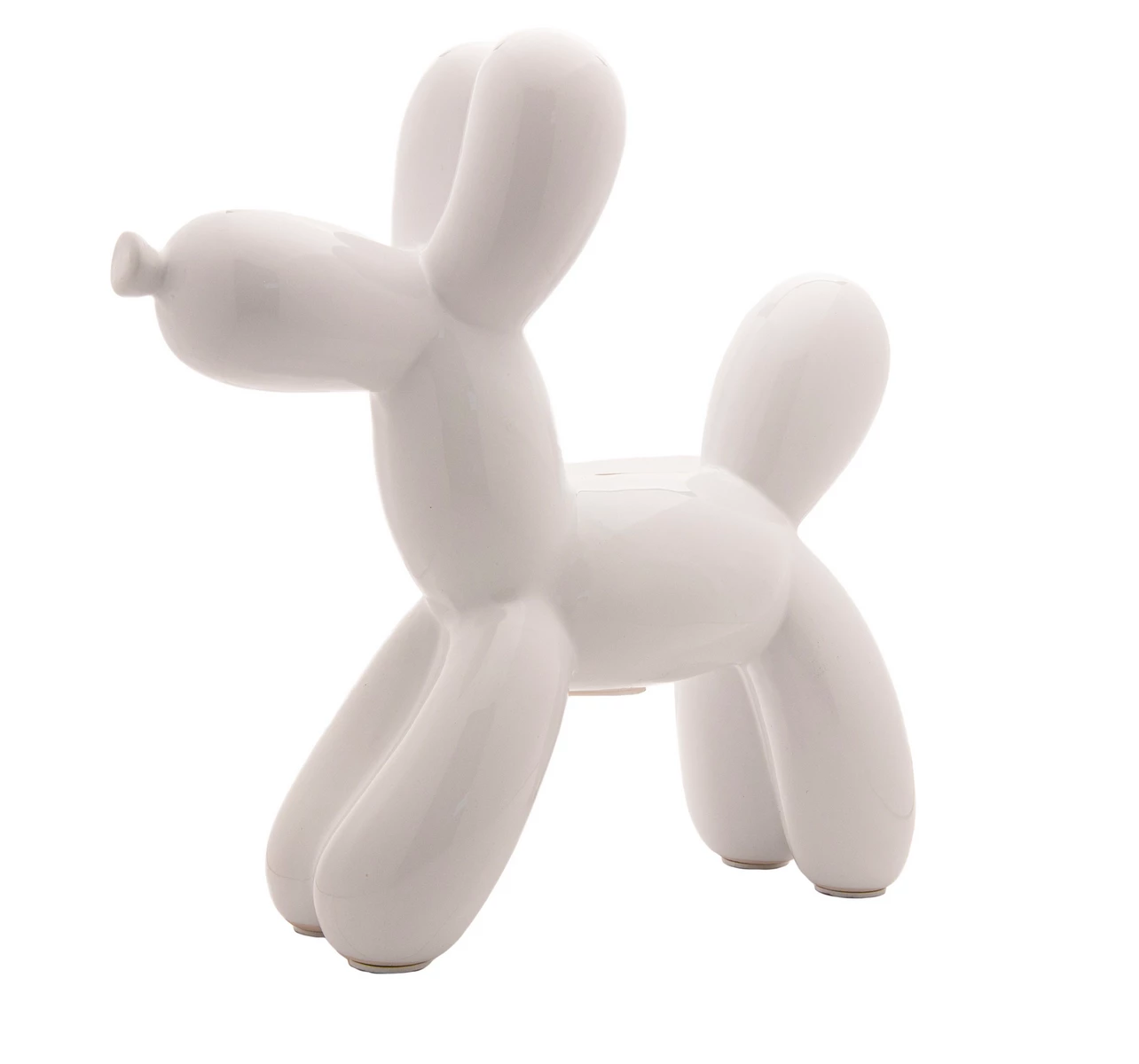 This Jeff Koons inspired piggy bank makes everyone happy. Our customers love to use it as a sculpture mixed and matched on shelves or it can be used to store your coins.