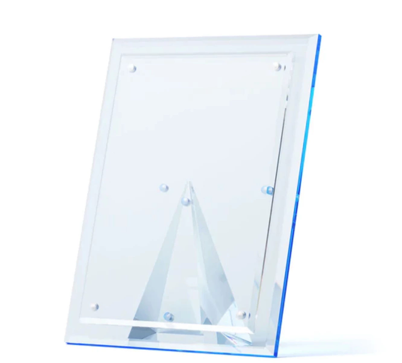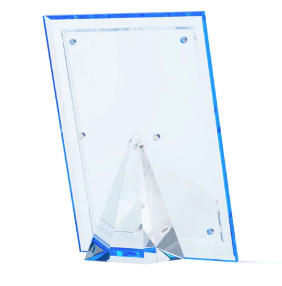 The Beveled Frame is crafted of superior-quality acrylic with hand-cut beveled edges, to beautifully display your most prized photos. The magnetic pyramid stand allows for vertical or horizontal use and ensures your photos look fantastic from any vantage point.