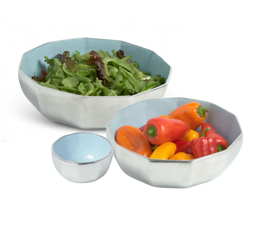 These Astra Bowls are the perfect serving dishes – great for pasta, salads, and more! Each piece is hand-made in high-quality sand-casted aluminum, and finished with a mother-of-pearl infused enamel. Astra’s modern design boasts graduated sizes, perfect for stacking with our 4″, 8” inch and 12” inch bowls for sleek and minimalist storage.