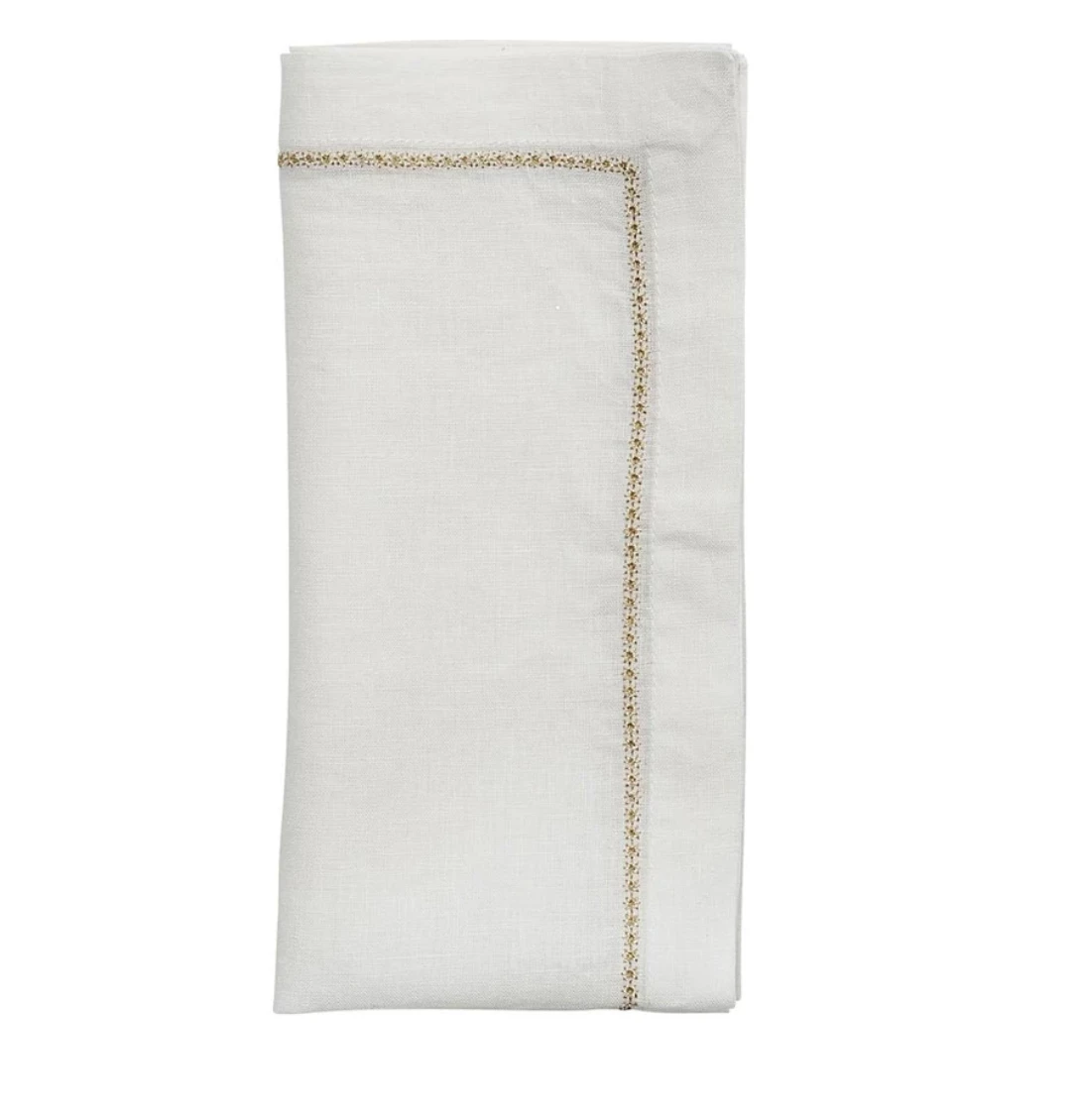 The Star Napkin is a classic white linen napkin embroidered with a delicate star design on the border of the napkin. These linen napkins by Kim Seybert, can be used for any type of table setting, from casual lunches to formal evening affairs. For the bride to be, these napkins are a beautiful addition as bridal shower napkins or for a rehearsal dinner.
