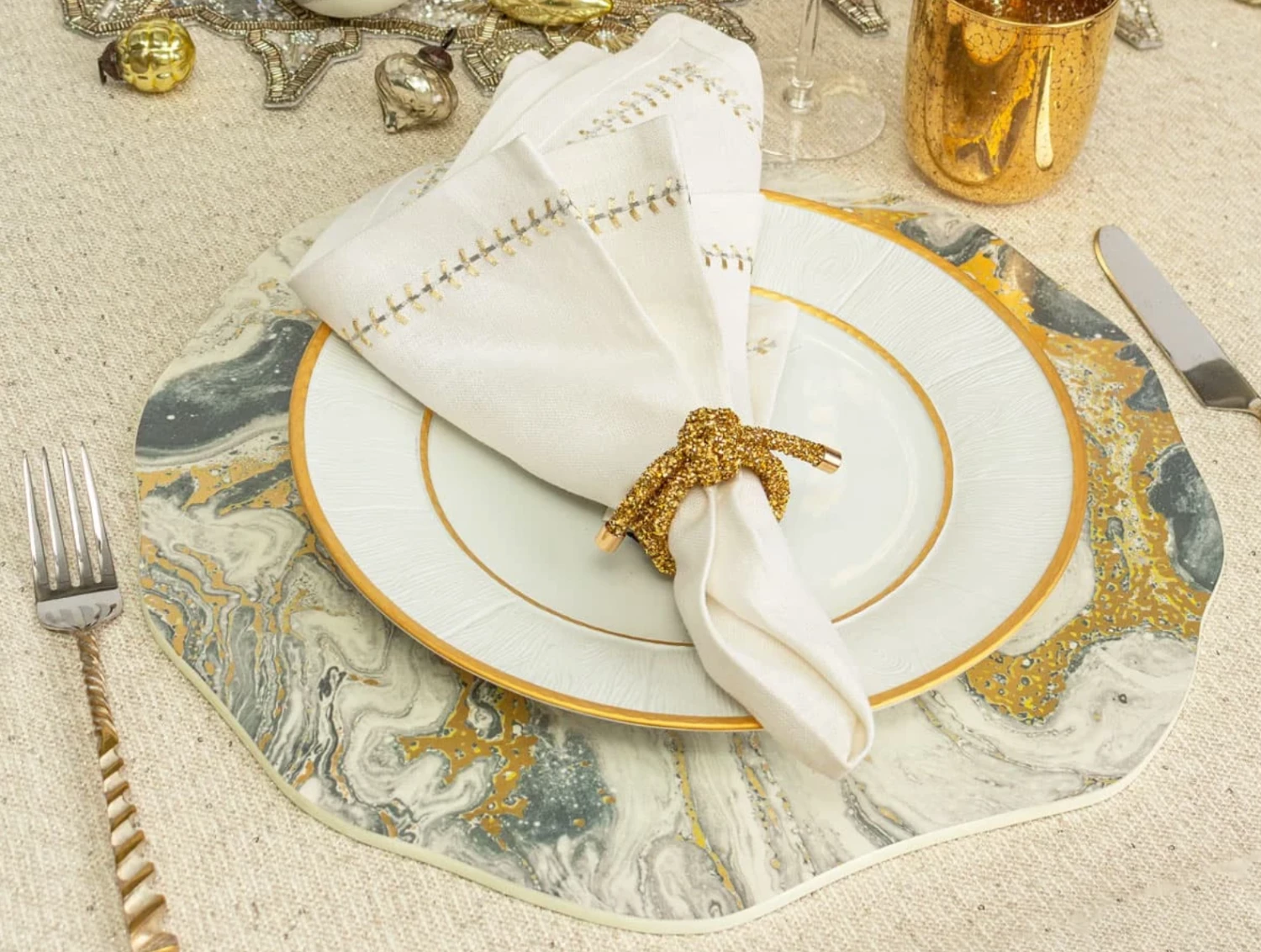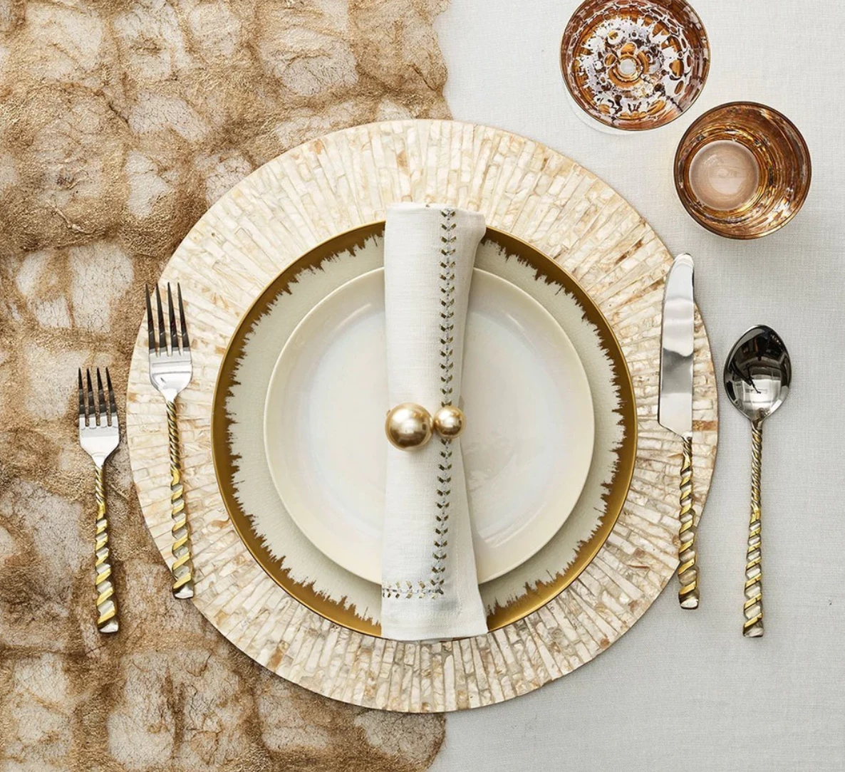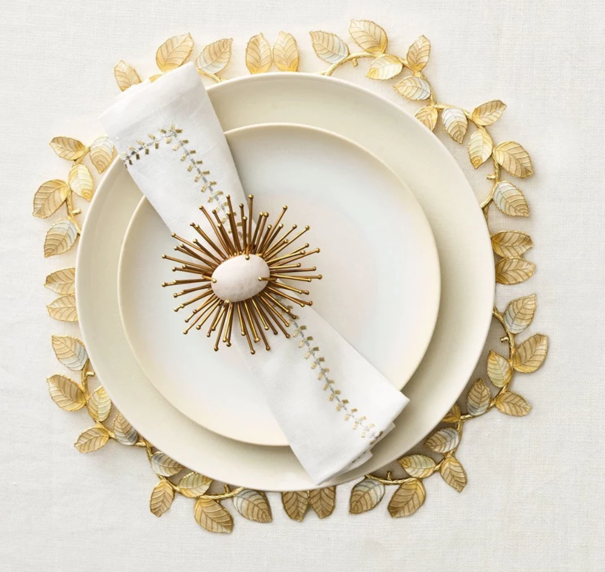 A more classic linen napkin would be hard to come by. The Herringbone napkin by Kim Seybert is perfect for use at the breakfast table, a beautiful lunch or dinner.Â