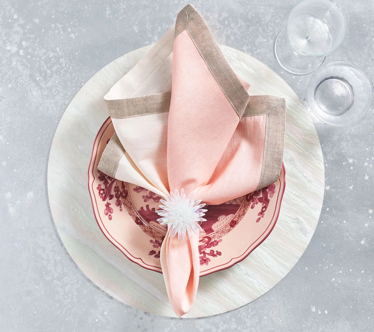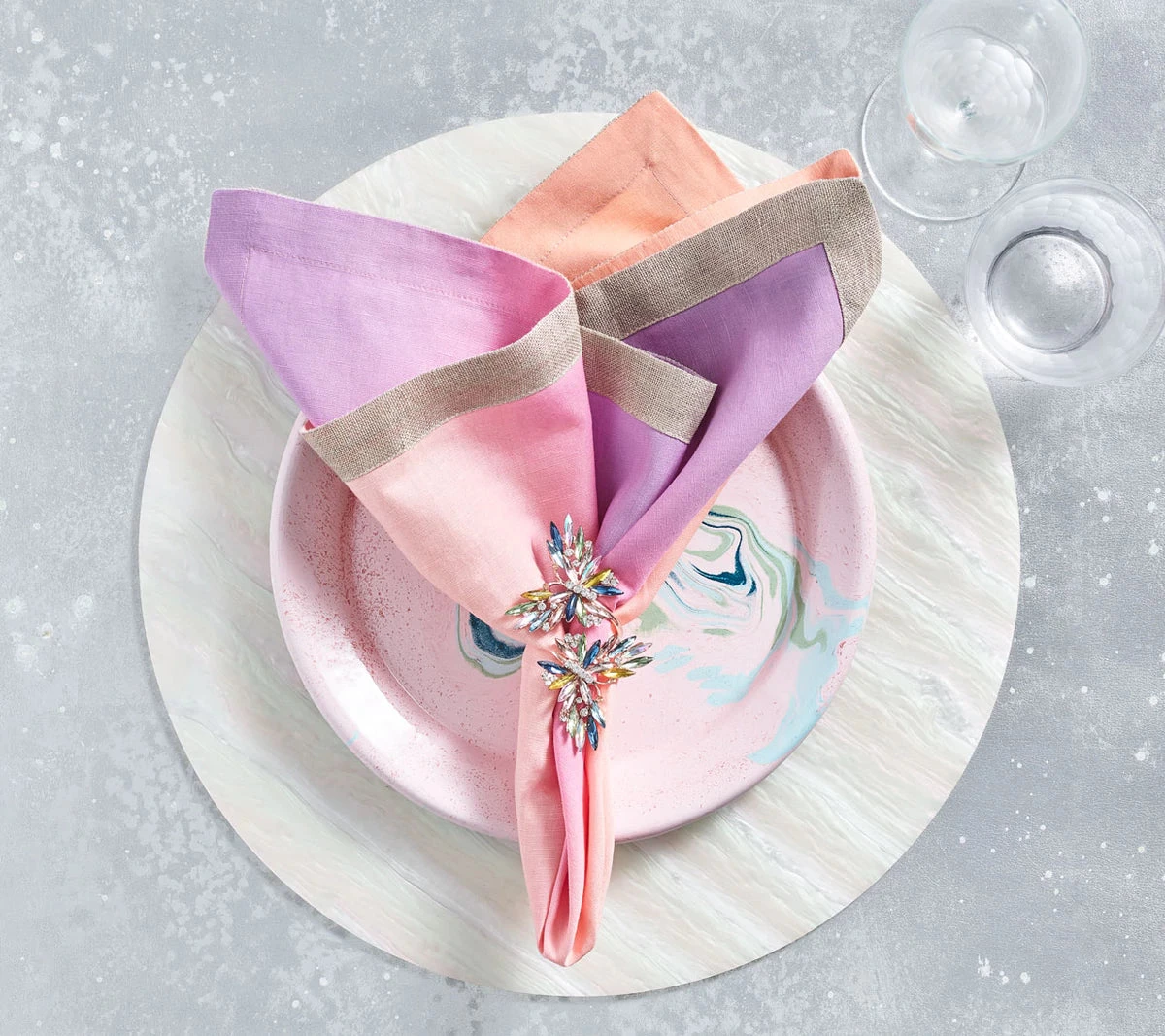 Named for the optical illusion it creates, Mirage Placemat is inspired by the refraction of light. The Mirage Placemat features hand-poured acrylic that reflects a multitude of colors.