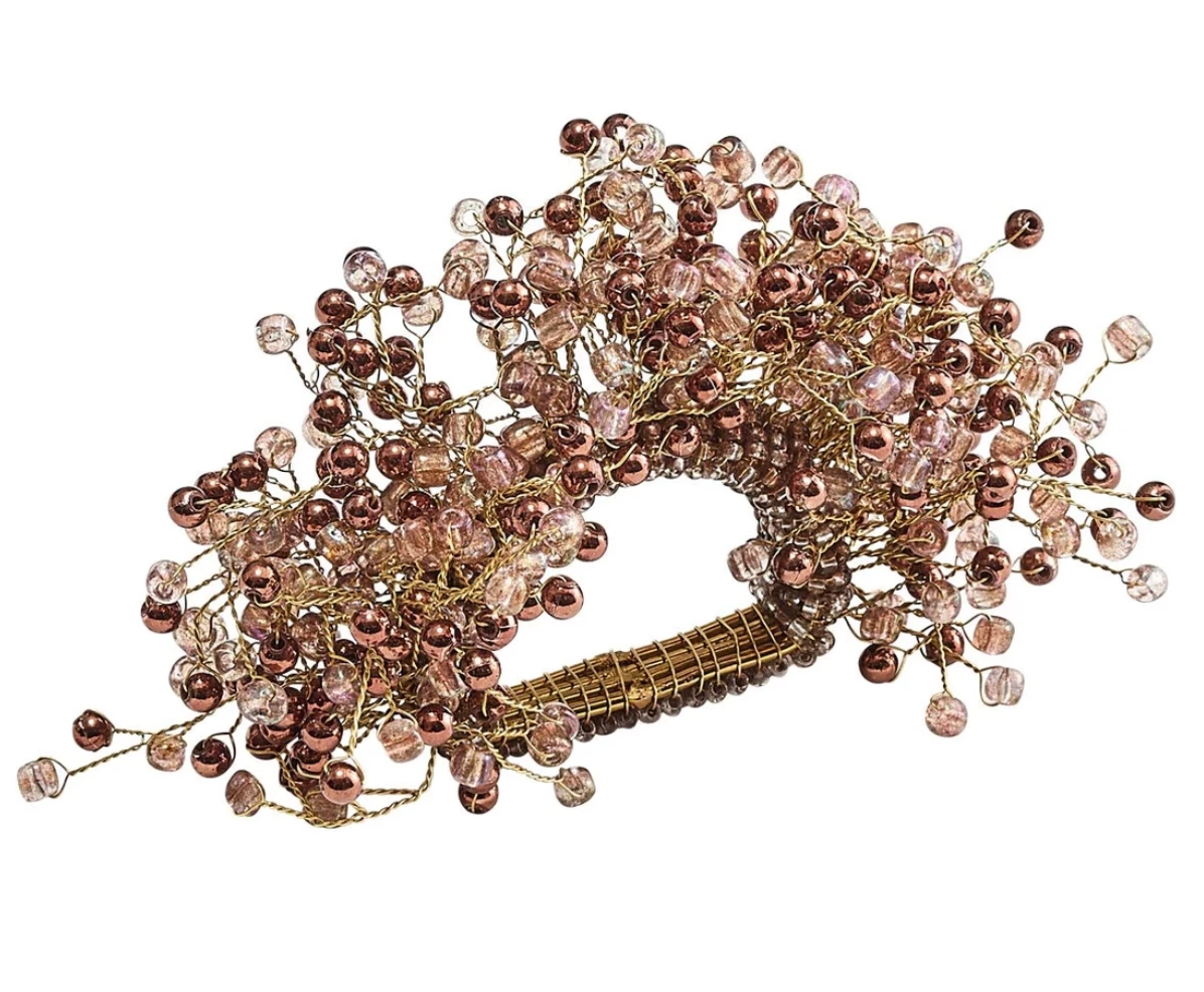 The Spray Napkin Ring features hand-attached, multi-colored glass beads in gorgeous shades of berry. It offers a versatile look and can dress up any table setting.