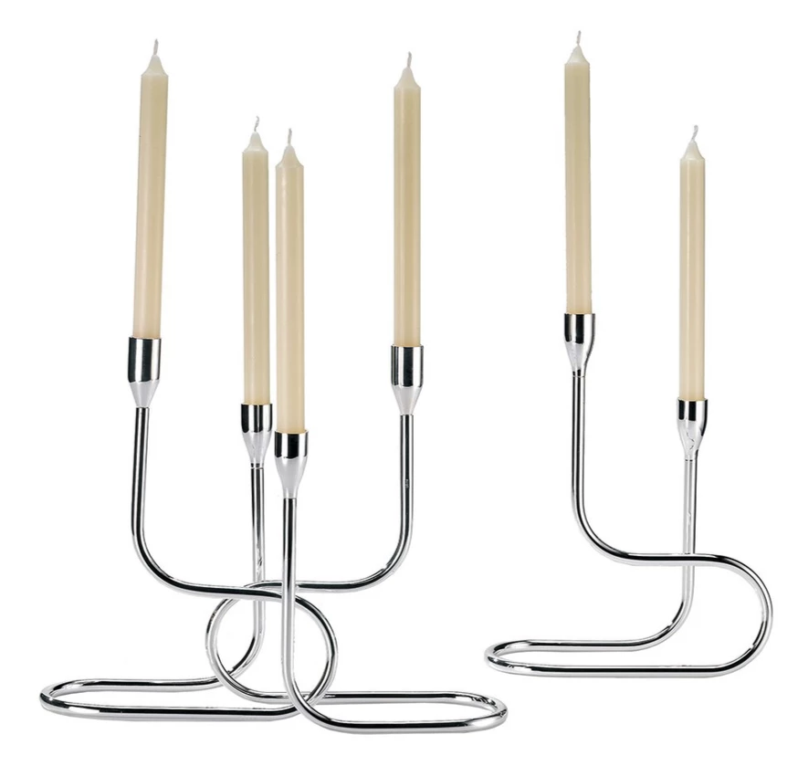 A truly elegant design. This set includes 2 candlestick holders that can be intertwined with a total of 4 candles displayed.