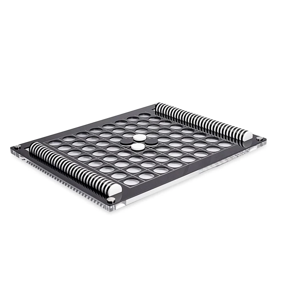 A classic game of Othello reinvented in a striking acrylic design. This fun game looks great during play or even left out as decor on a coffee table.Â