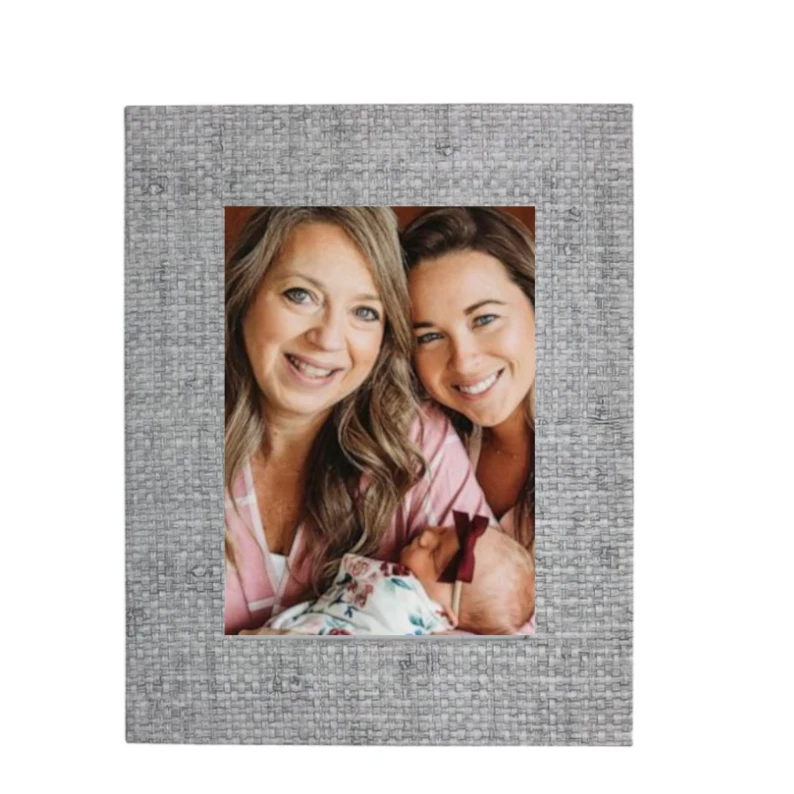 These grasscloth frames have a woven texture that adds a wonderful element to your decor. With a pale grey Faux Grasscloth texture, the frame will provide a fresh look to your home and is an undeniably chic way to display your special photographs.