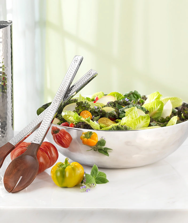 This modern serving bowl has a simple, pure design for everyday use. Crafted of 100% stainless, this it is perfect for fruits or salad. Easy-care and no polishing!