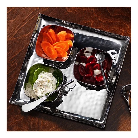 Mesa trays are a favorite for any occasion. Dishwasher safe and warms up to 250 degrees, keeping hors d’oeuvres consistently delicious while serving as a stunning stainless steel backdrop at your party.