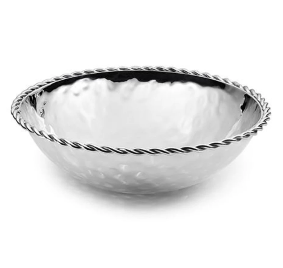 Our Paloma bowls will round out any table setting, from modern to traditional. These timeless stainless pieces are forever. Available in multiple sizes for nuts, candies, dips, or large buffet salads. Accented with braided wire design, handcrafted and no polishing!