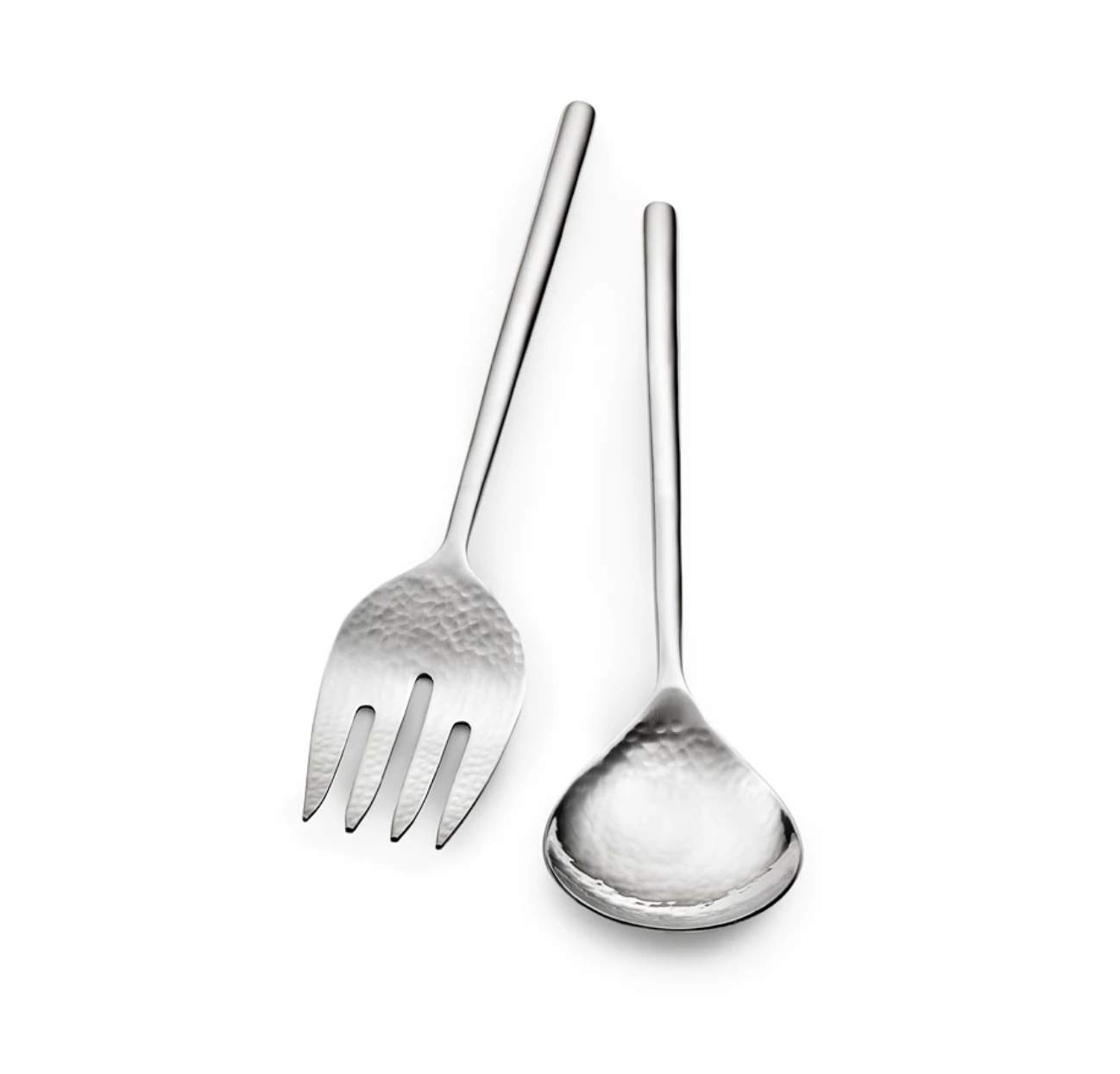 The Versa Salad Set is our best everyday serving set. This 2 piece hammered salad server set is clean and modern and goes with any bowl. Artisan made and guaranteed for a lifetime of use.