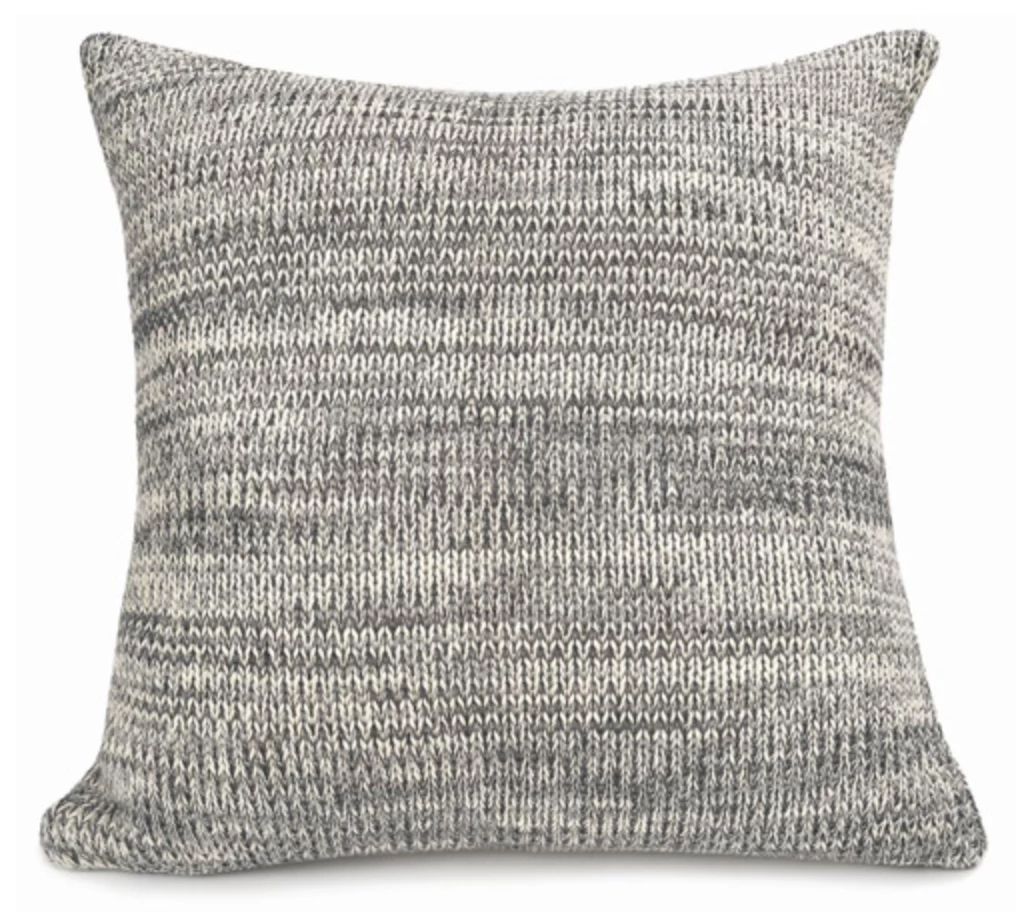 A beautiful chunky knit pillow in shades of ivory and grey. Soft and casual.