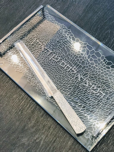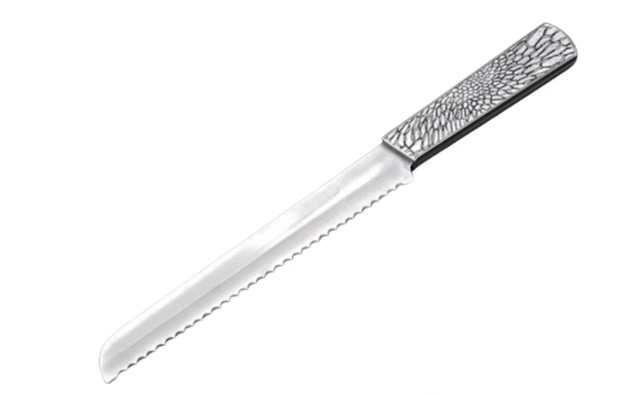 Made in Israel, this gorgeous Challah Knife incorporates metal lace art work in the design to create an extraordinary piece. Something to enjoy over a lifetime, the Organic Lace Challah Knife is a perfect choice for a wedding or engagement gift. Pair it with the matching Organic Lace Challah Board and enjoy using both items together as a set.