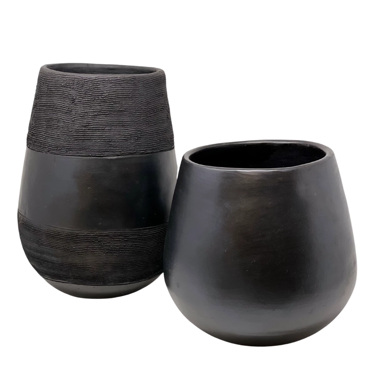 These new contemporary accessories are hand made of ceramic by craftsmen and work together to create a simple but powerful statement in any space. The Small piece has a smoother facade which works beautifully with the raked texture of the Large Piece. Use them alone or as a pair.